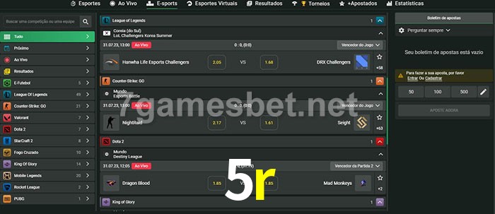 A aposta 5r oferece aos jogadores a experiência mais conveniente de apostas em eSports!